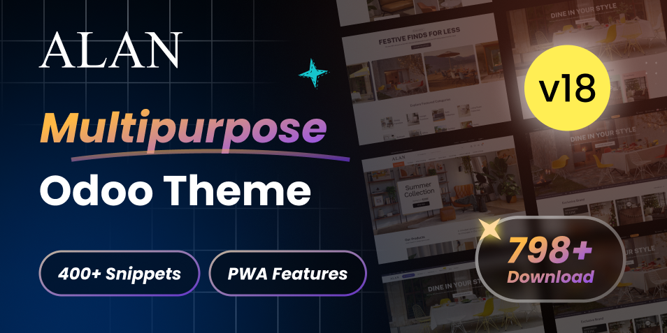 Alan is the fastest Odoo theme for odoo latest Version 18, Version 17, 16 and lesser that is suitable for any type of online store.